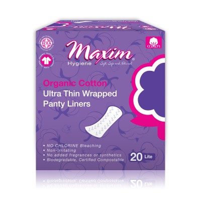 Maxim Hygine, Organic Cotton Ultra Thin Wrapped Panty Liners, Lite, 20ct