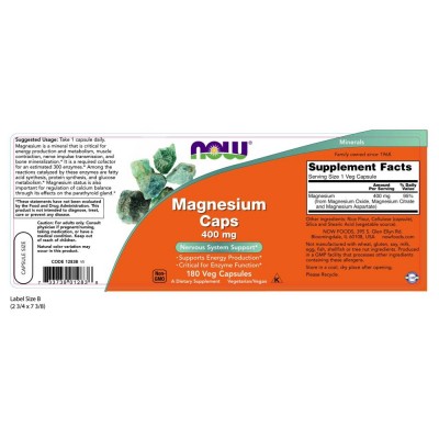 • 나우 Now, 마그네슘 Caps 400 mg, 180 캡슐